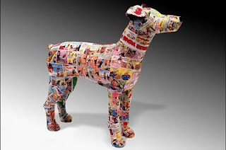 Yes I know the pun was weak, but seriously who could resist. They're paper mache dogs covered in old Beano comics. Get it?