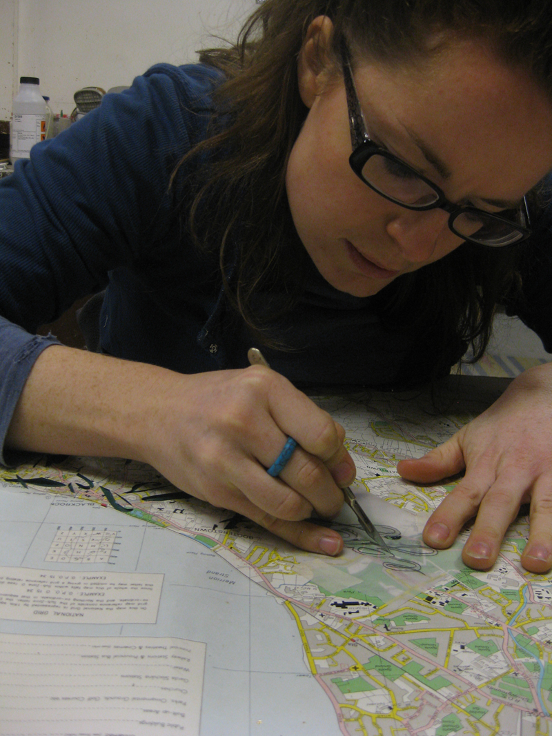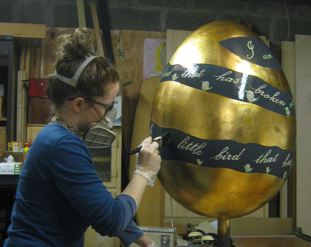 I had decided on a JM Barrie quote from Peter Pan for the quote. This quote was to wrap itself around the egg twice, in between the bands of Gold Leaf. Each letter was painstakingly cut from a vintage map of Dublin.